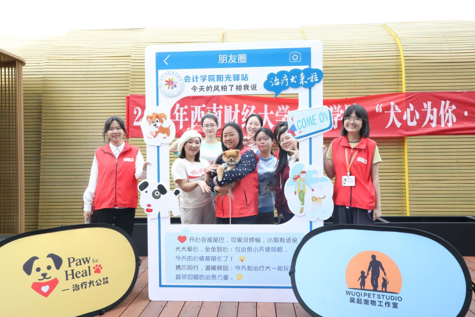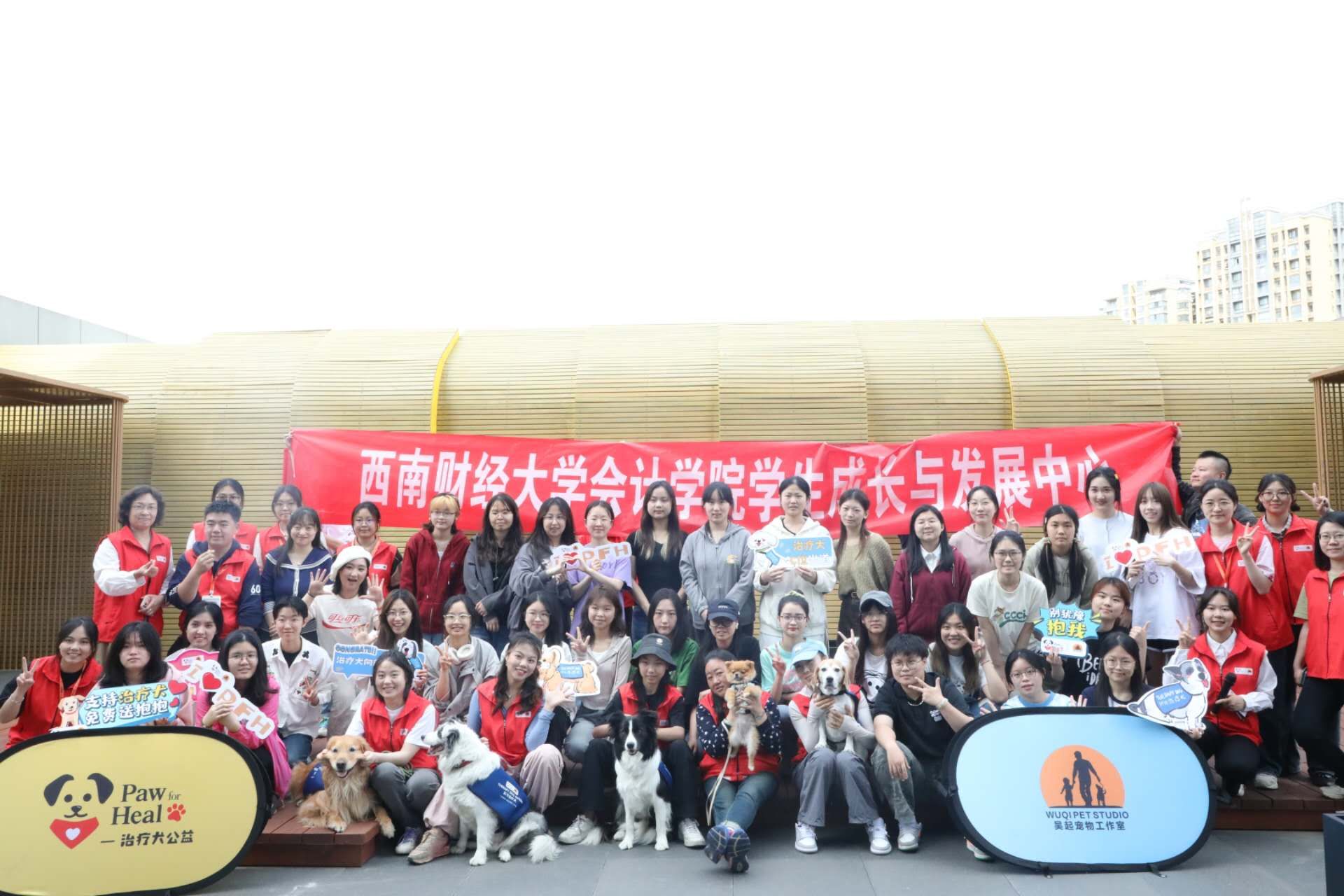 为更好地促进“心理育人”工作,创新性促进大学生心理健康发展,缓解学生的压力与焦虑,4月30日,会计学院联合上海智宠吴起宠物工作室· PFH治疗犬公益项目团队于诚正楼7楼的户外平台举办了主题为“犬心为你,治愈之旅”的互动式心理体验活动。