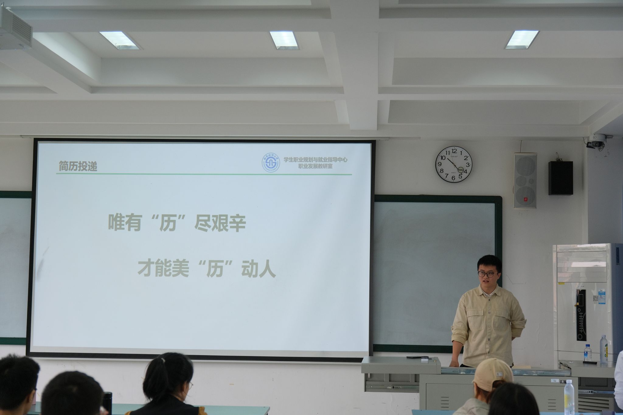 徐天然老师针对“求职过程中可能面临的法律情景”这一问题进行讲解。他帮助同学们对“就业协议书”、“实习协议”以及“劳动合同”三者进行了细致区别,随后通过互动问答的形式,针对“招聘广告中违规的歧视性内容”、“试用期的相关规定”、“入职体检”等问题做出了详细解答,帮助即将迈入职场的同学们规避法律风险。