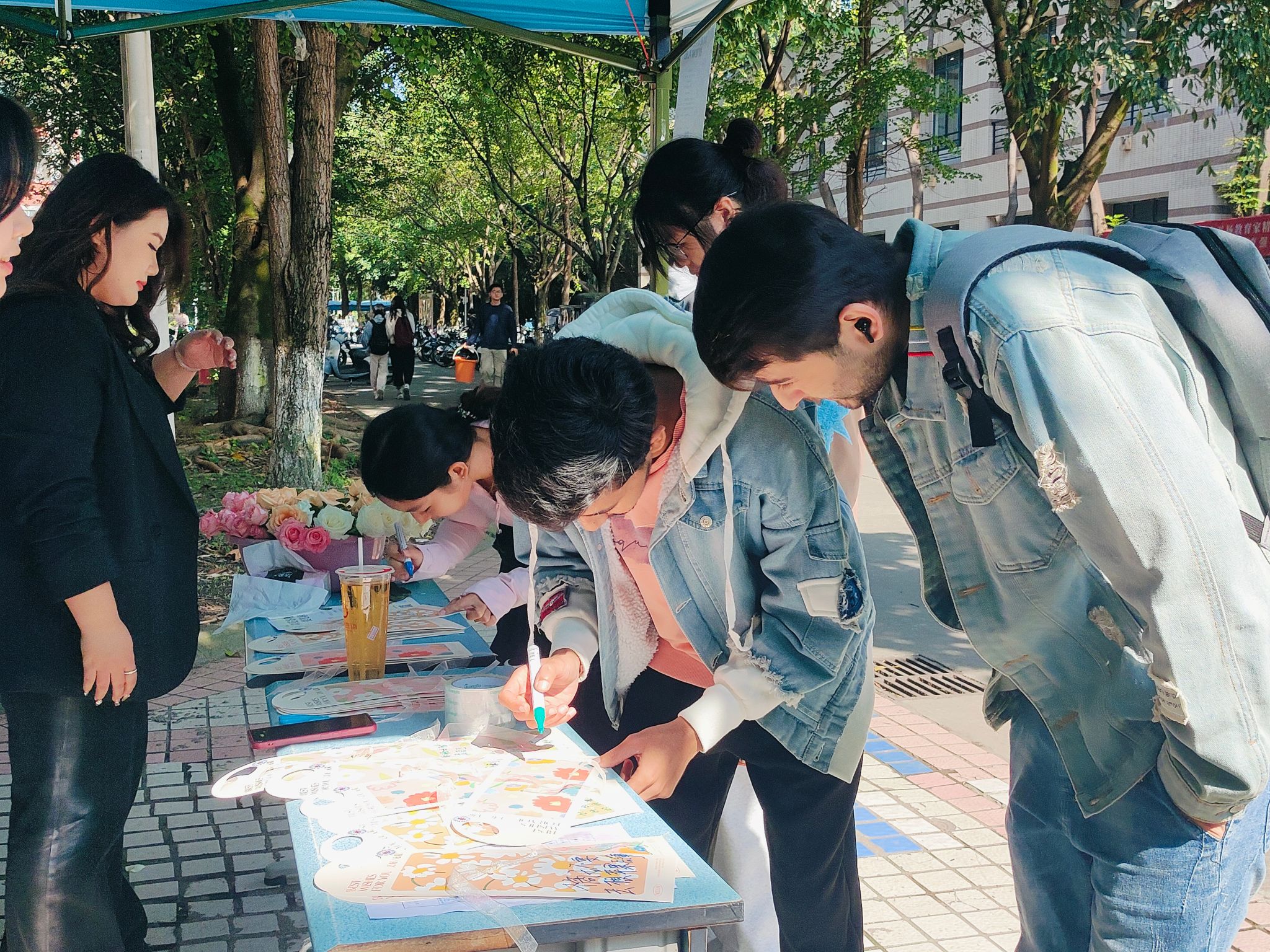 10月22日,会计学院阳光驿站组织的“以花寄我语,提笔解人愁”情绪交换活动于五谷堂门口顺利举办。本次情绪体验活动旨在更好地推进“心理育人”工作,创新性促进大学生心理健康发展。