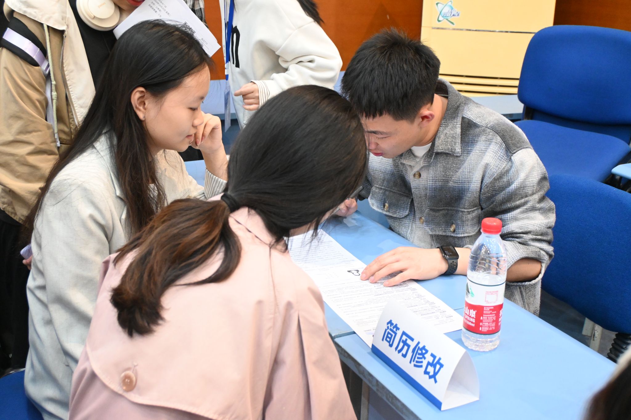 启动仪式后,招聘会正式开始。到场同学前往各个事务所投递简历,主动寻找心仪的工作机会,展现出对未来职业生涯的无限憧憬。各用人单位也认真筛选每一份简历,对前来投递的同学给予积极回应,提供面试机会。现场还设有简历修改点,为参会毕业生求职提供便利。