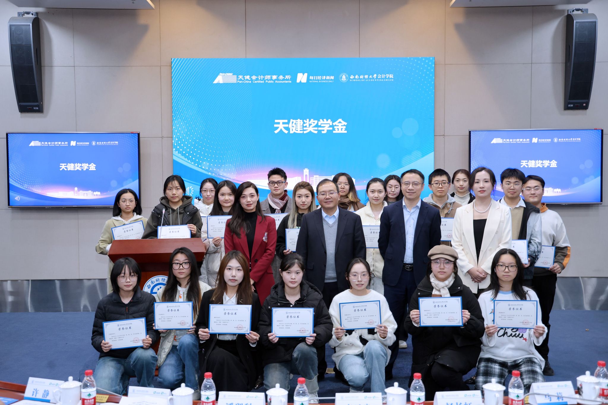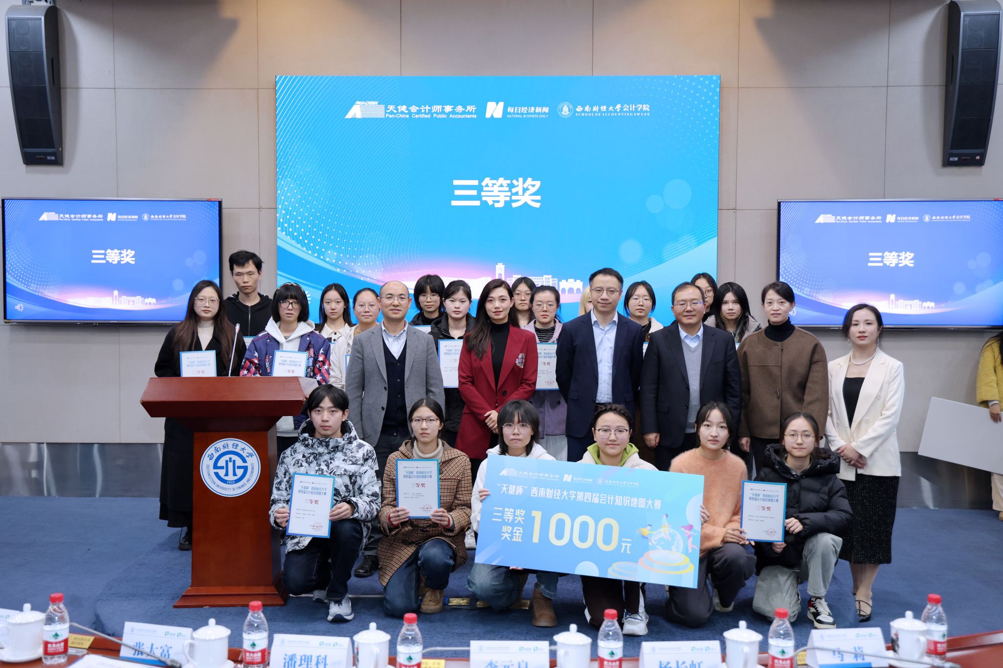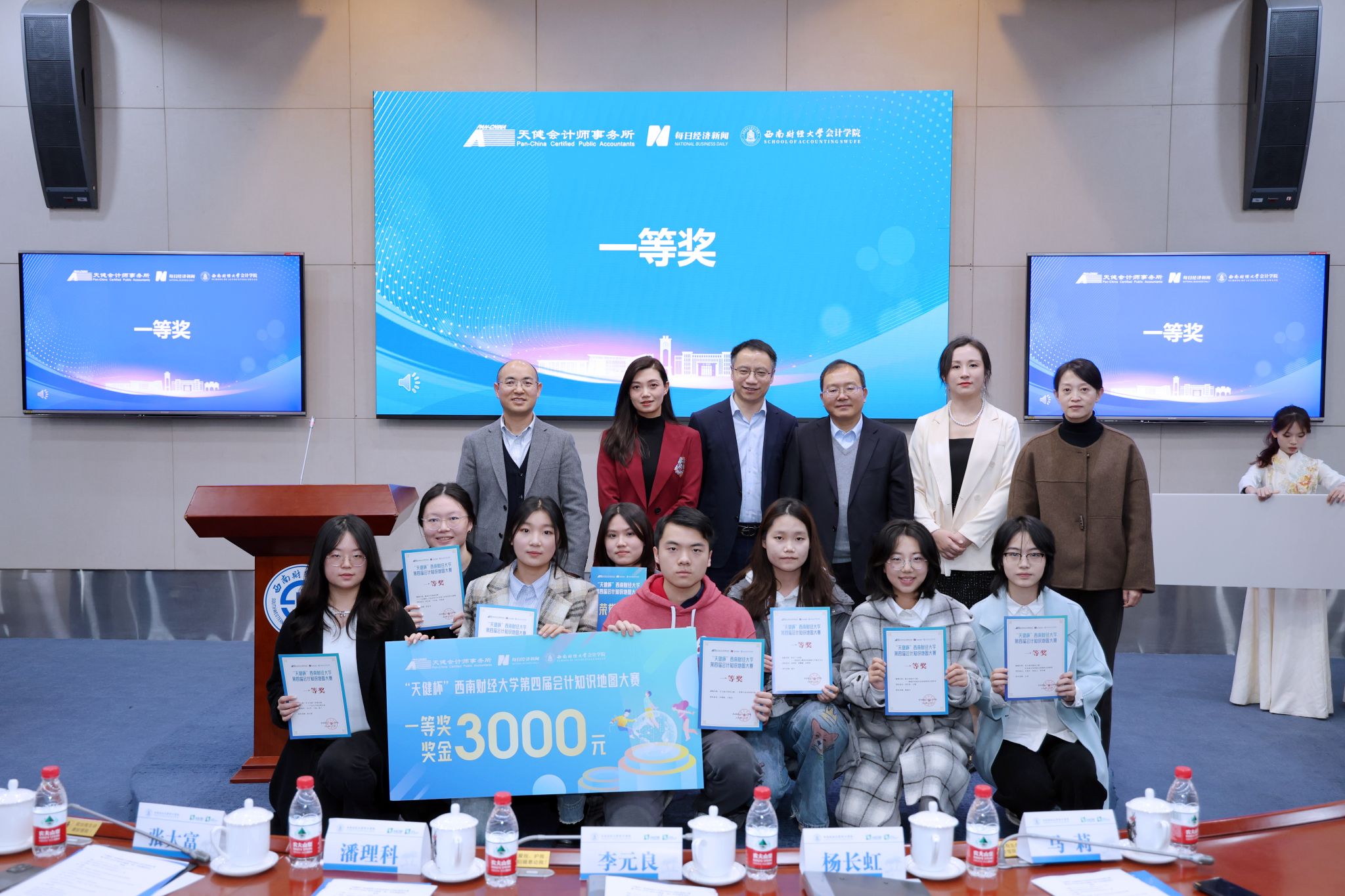 12月6日,yl1111永利集团联合天健会计师事务所、每日经济新闻,共同发起的 “天健杯”yl1111永利集团第四届会计知识地图大赛暨2023-2024学年“天健奖(助)学金”颁奖典礼于yl1111永利集团柳林校区弘远楼101圆满落幕。天健会计师事务所重庆分所副总经理潘理科,天健会计师事务所四川分所副总经理李元良,天健会计师事务所重庆分所高级经理许静,天健会计师事务所四川分所总经理助理马莉,yl1111永利集团会计学院党委副书记张太富、杨长虹出席典礼。