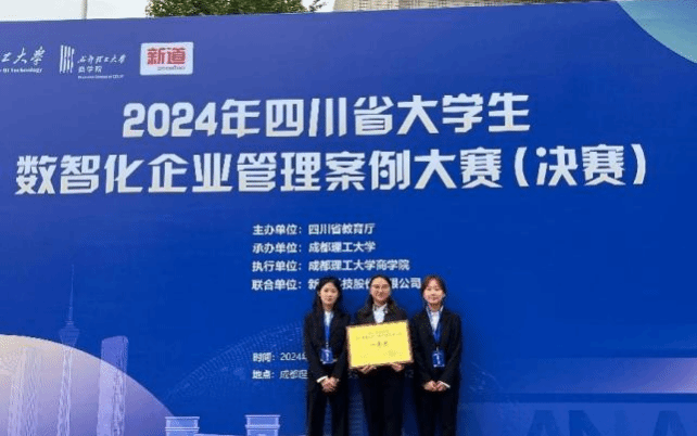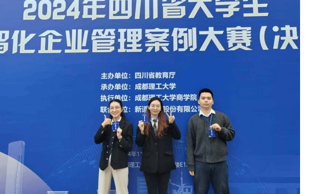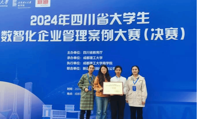 2024年11月17日,由四川省教育厅主办,成都理工大学承办,新道科技股份有限公司提供技术支持的2024年四川省大学生数智化企业管理案例大赛决赛圆满落幕,我院3支本科生队伍,2支研究生队伍,均获得了四川省一等奖,这5支队伍的指导老师也获得了优秀指导老师奖,另有1支本科生队伍和2支研究生队伍荣获四川省三等奖。