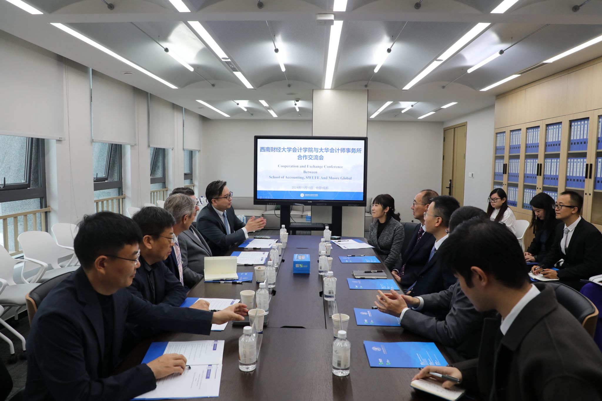 学院院长唐雪松对大华国际一行的到来表示热烈欢迎,介绍了学院的办学历史、人才培养、教学教学改革、科研与社会服务、国际化等方面的举措和取得的成效。大华首席执行官Anton Colela介绍了大华会计师事务所的发展历程和业务规模,他表示大华高度重视校企合作和员工培养,高度赞赏学院在大数据会计改革等方面所取得的成效。
