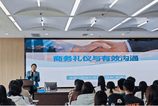 本次讲座,林莉教授以其生动且极具实用性的讲解,为同学们的文化素养提升和沟通能力发展指明了方向,不仅助力同学们掌握商务礼仪与有效沟通的精髓,更指引着他们以优雅之姿、卓越之能书写属于自己的精彩篇章。