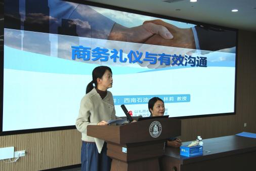 11月5日下午,会计学院于柳林校区诚正楼720会议室成功举办主题为《行之有礼,言之有道——商务礼仪与有效沟通》的文化素质讲座。本次讲座由会计学院党委副书记杨长虹主持,西南石油大学马克思主义学院党委副书记、纪委书记林莉教授主讲。
