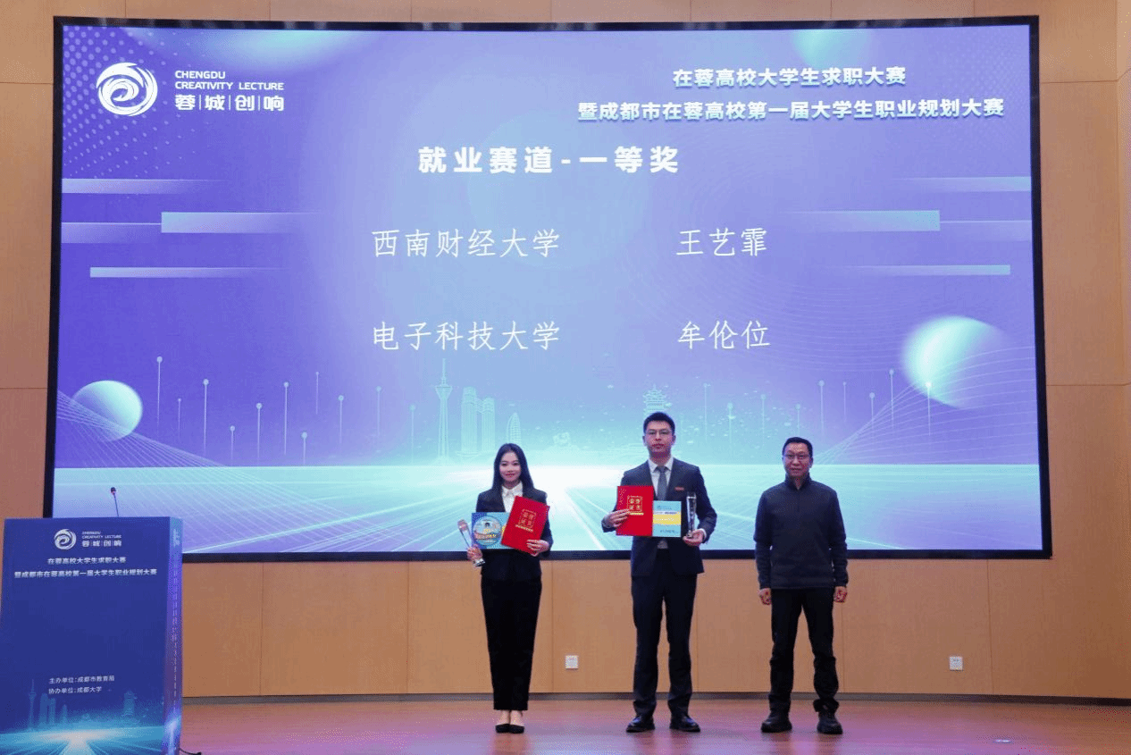 12月6日,由成都市教育局主办的“在蓉高校大学生求职大赛暨成都市在蓉高校第一届大学生职业规划大赛”在成都大学圆满落下帷幕,2024级会计学专业硕士研究生王艺霏同学以优异的表现获得就业赛道一等奖。