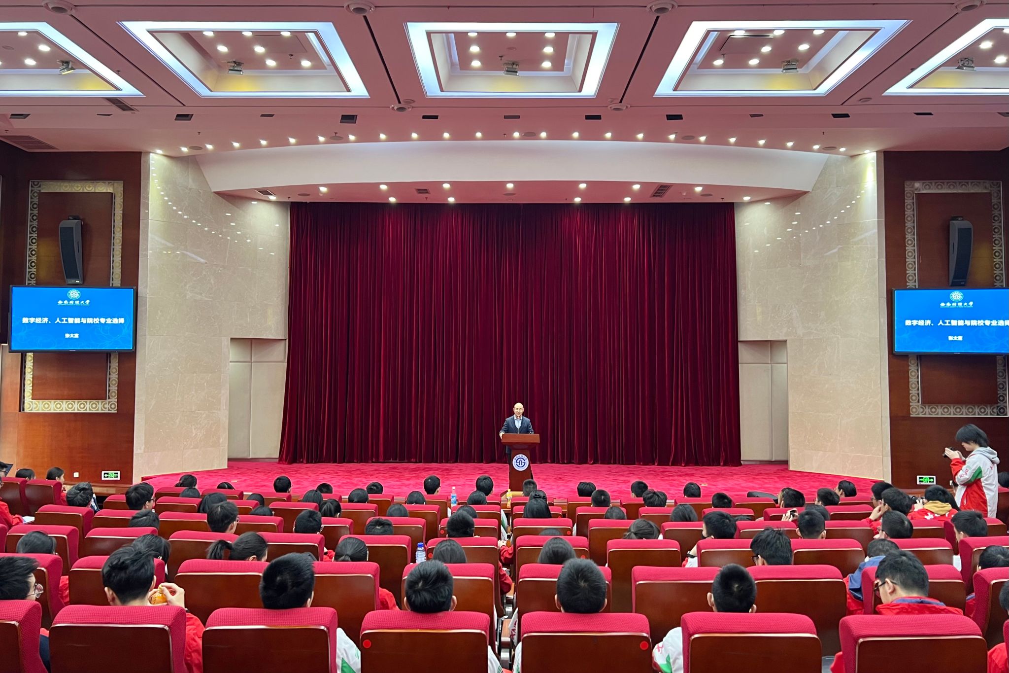 上午9时,载着学子的大巴车缓缓驶入校园,路过“光华门”,走进弘远楼,大学殿堂的学术气息扑面而来!本次活动的首场专家讲座在105会议室开讲,由会计学院党委副书记张太富副教授以《数字经济、人工智能与院校专业选择》为主题,生动阐释了西财“新财经”战略布局。