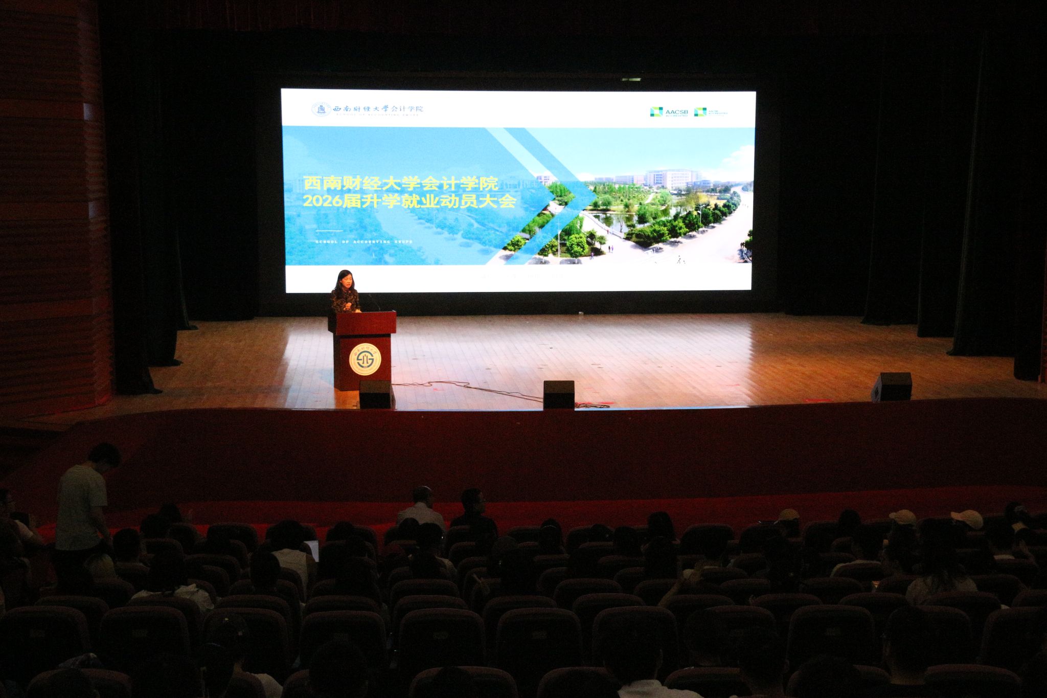 为切实做好2026届本科毕业生升学就业工作,6月5日下午,yl1111永利集团会计学院于学生活动中心800人厅成功举办了2026届本科毕业生升学就业动员大会。会计学院副院长易阳、会计学院党委副书记张太富、学生职业规划和就业指导中心教师吴怡然和本科毕业班辅导员出席会议。本次会议由会计学院学生成长与发展中心教师陈秋达主持。