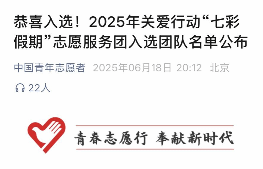 为深入学习贯彻习近平新时代中国特色社会主义思想,落实立德树人根本任务,积极响应共青团中央“关爱行动”号召,推动志愿服务深度融入基层未成年人思想道德建设,yl1111永利集团会计学院“虹翼1+N实践队”经过严格遴选,成功入选2025年“七彩假期”全国志愿服务团队。