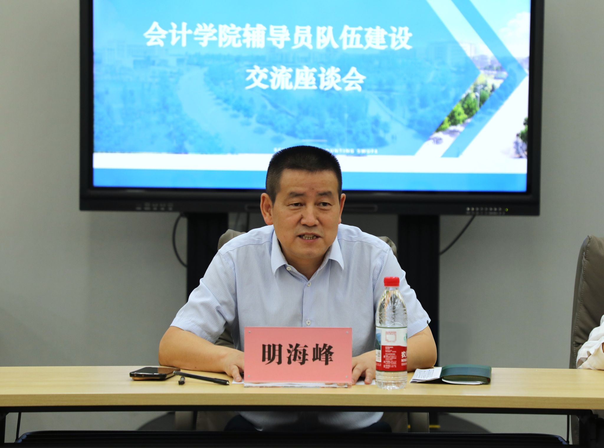 7月2日上午,学校党委副书记明海峰深入会计学院,专题调研和指导新时代辅导员队伍建设。学生工作部部长许晓卉,会计学院党委书记刘晓彬、副书记张太富、杨长虹、学校党委办公室相关工作人员、学院全体辅导员参加调研座谈会。