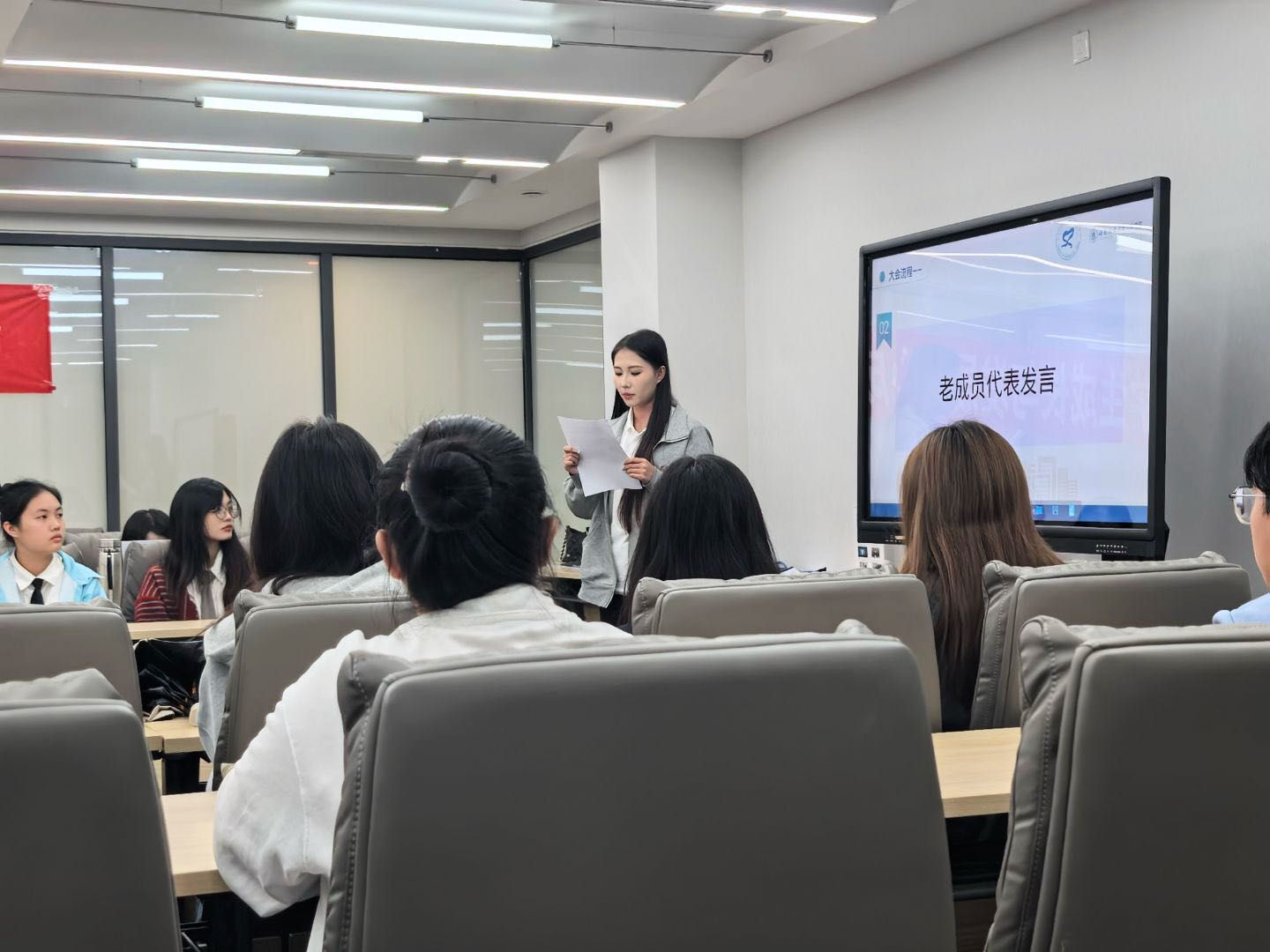随后,老成员代表闫彦峰回顾了在中心工作的点滴经历,分享了自身的成长与收获,并表达了对中心未来的真挚祝福。新成员代表张傲涵则阐述了对中心职能的理解,表示将以饱满的热情积极履职,为中心发展贡献青春力量。