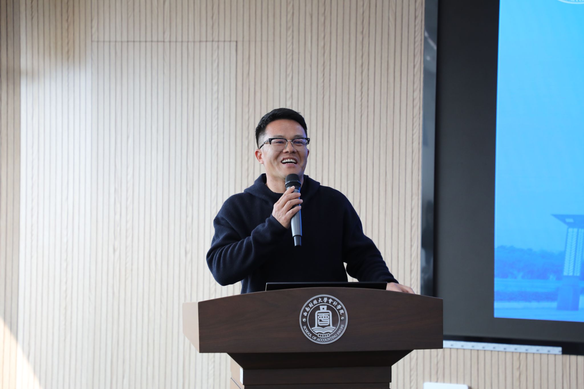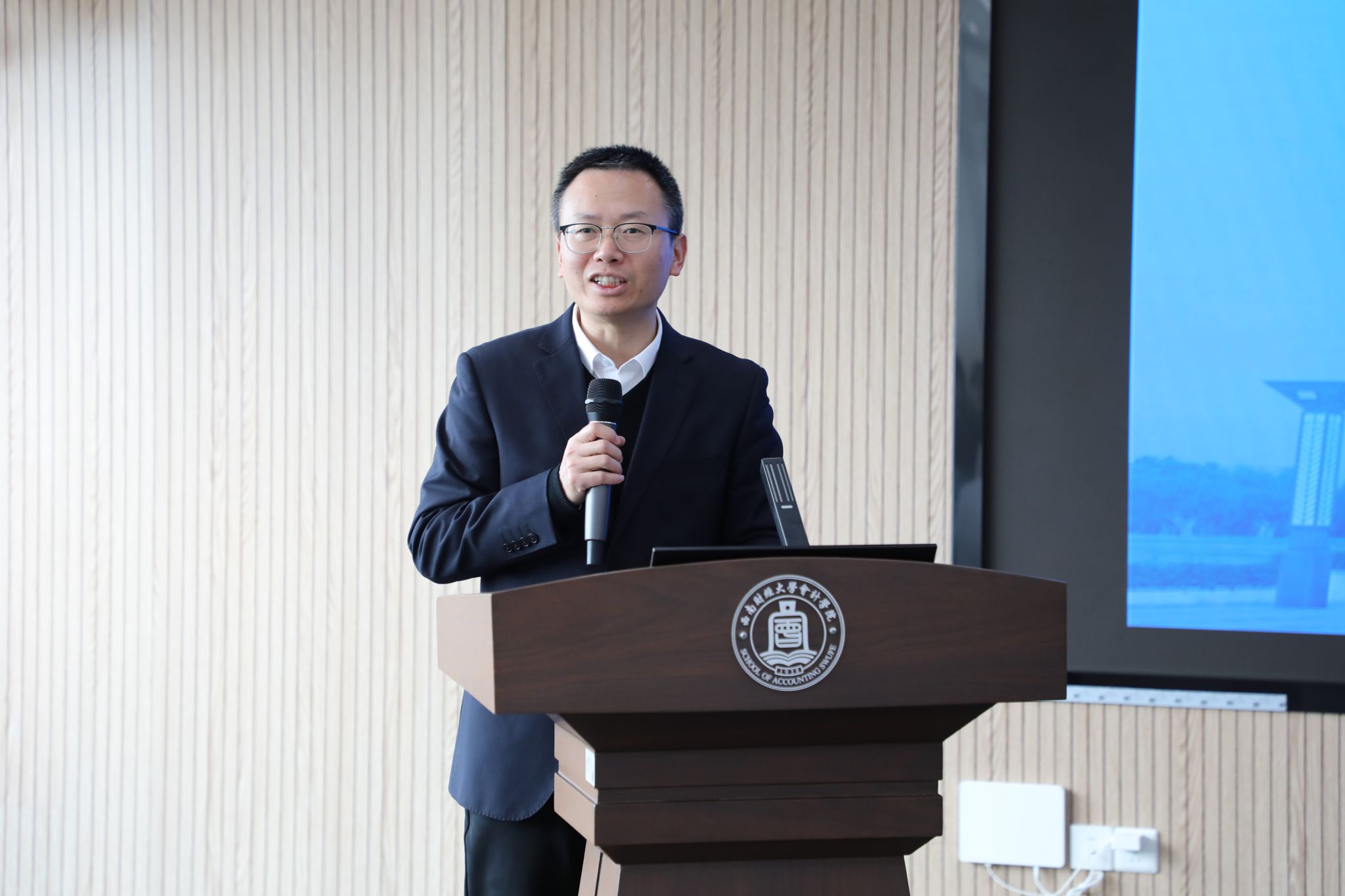 活动伊始,会计学院院长唐雪松发表讲话。他对微明校友专程返校表示热烈欢迎,向获奖同学致以诚挚祝贺。唐院长指出,微明校友于百年校庆之际捐资设奖的善举,是传递感恩与传承的精神力量,他强调,数字时代下会计行业机遇与挑战并存,希望学子们向校友学习,夯实专业基础、坚守职业精神,同时拓宽视野,培养数据分析、风险管控等综合能力。