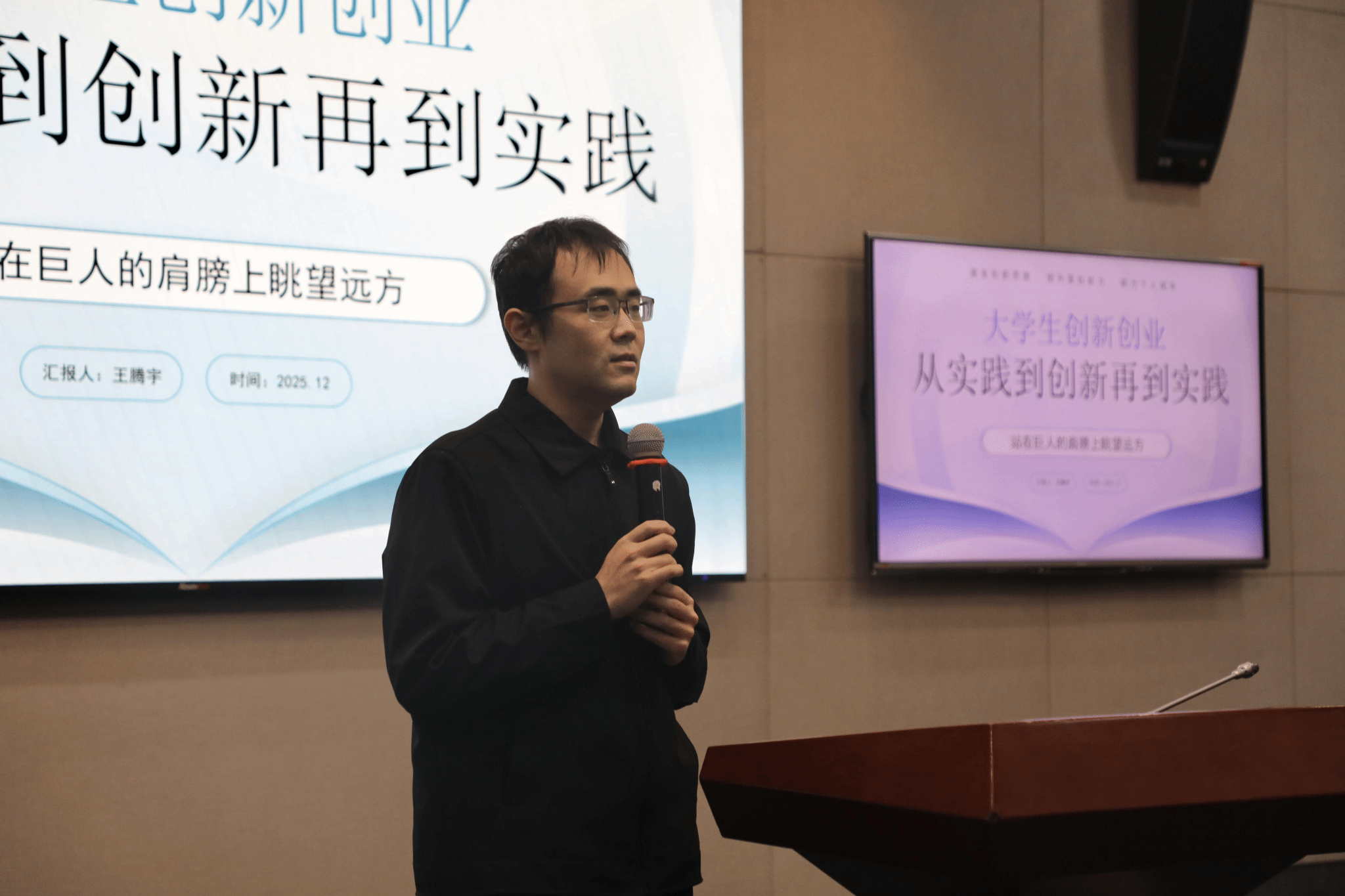 2025年12月9日,yl1111永利集团会计学院“会聚星火青年双创营”系列活动专题讲座在弘远楼101开展,本次讲座由会计学院创新创业中心特聘老师王腾宇博士担任主讲,以“大学生创新创业从实践到创新再到实践”为主题,围绕双创实践中的痛点、创新思维的培育及成果转化路径展开分享,现场互动频繁,反响热烈。