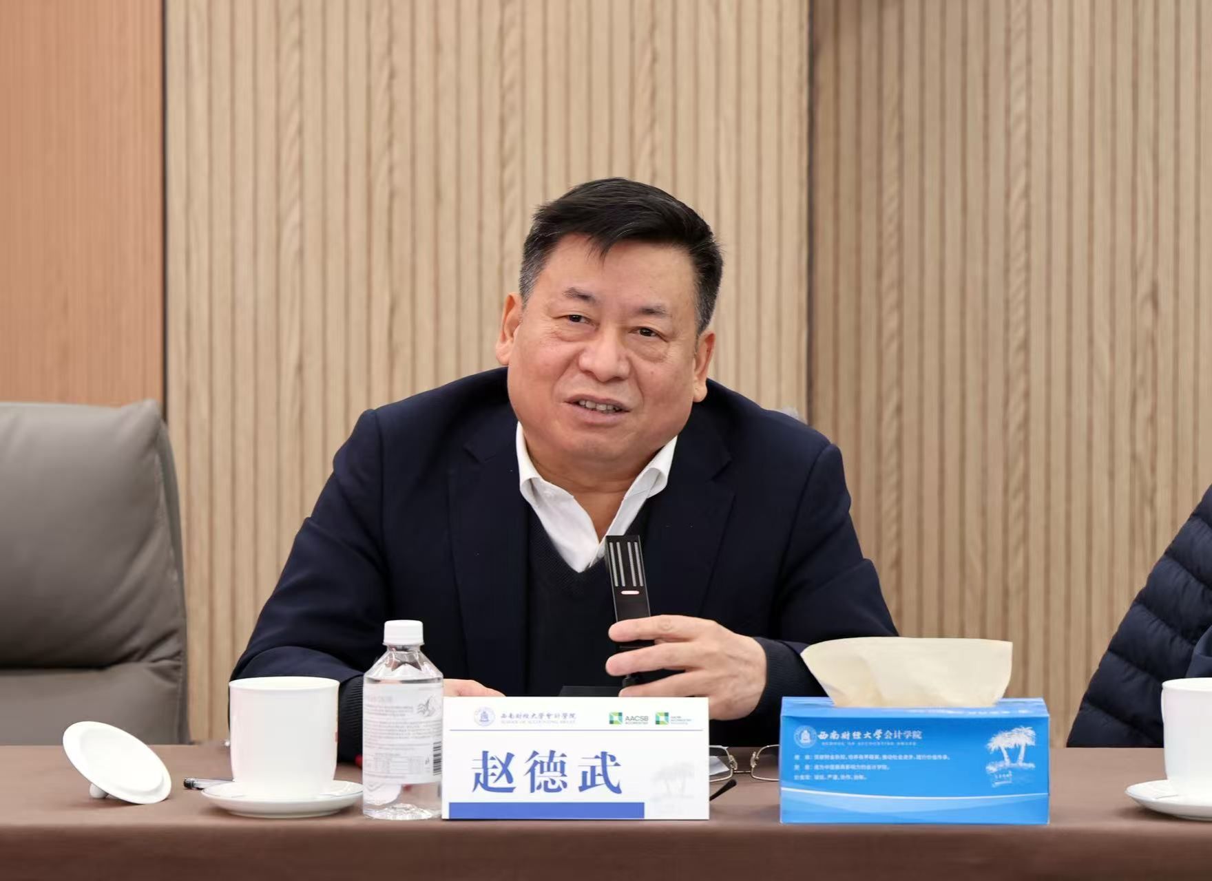 随后,学院副院长易阳系统汇报了学院“十四五”期间取得的显著成就,并详细阐述了“十五五”发展规划的初步构想,围绕学校第十四次党代会部署,聚焦高质量推动建成“国内顶尖、国际知名的拔尖创新人才育人新标杆、商科学术与社会服务新高地、中国特色财会教育新典范”的总体目标提出了发展思路与重点任务举措,为后续深入交流奠定了基础。