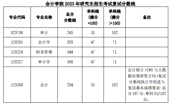 会计学院关于公布 2023 年硕士研究生招生考试复试分数线的通知