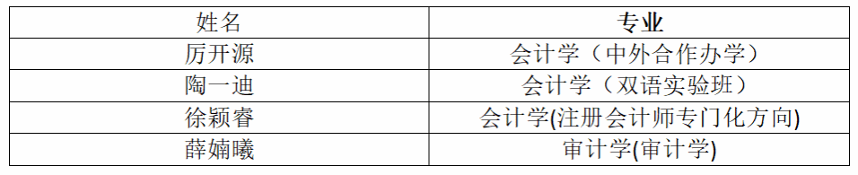 通过自主报名、资格审核、笔试及公开竞选,经会计学院团委酝酿研究,现确定团委秘书处、学生会主席团创业孵化部拟任人员名单公示如下: