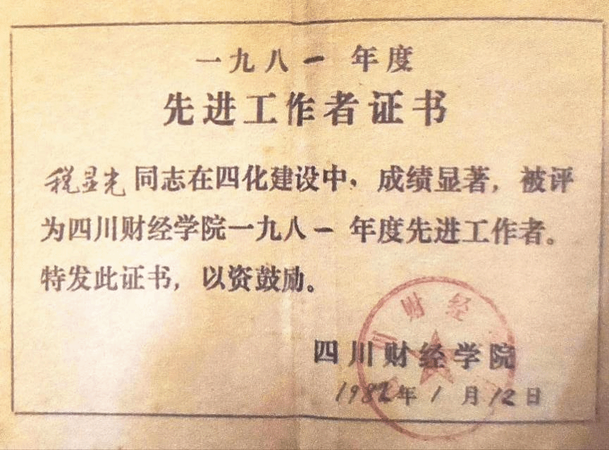 1952年,四川财经学院正式成立,税显光于会计系任教。从成华大学财经学院起,在会计系待了整整36年,直到退休。会计系于他而言就是家一般的存在,无法分离。