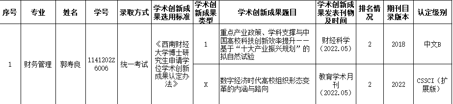 会计学院2022年上半年申请博士学位研究生学术创新成果公示(四)