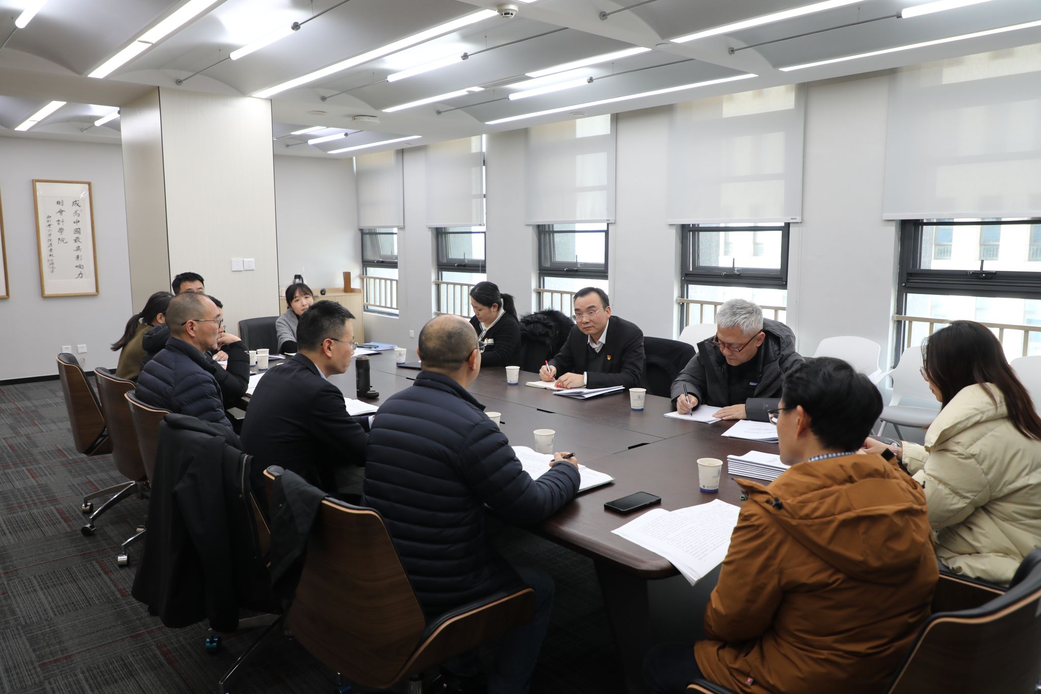 为推动学校第十四次党代会精神在学院落地生根,全面审视学院当前发展状况,明确未来发展方向。1月6日下午,会计学院党委理论学习中心组在诚正楼731会议室召开学校党代会精神专题学习会,学院领导班子及院长助理参加学习。学校理论学习中心组列席旁听工作组第九组组长马永强、副组长陈建东及工作人员到会指导。