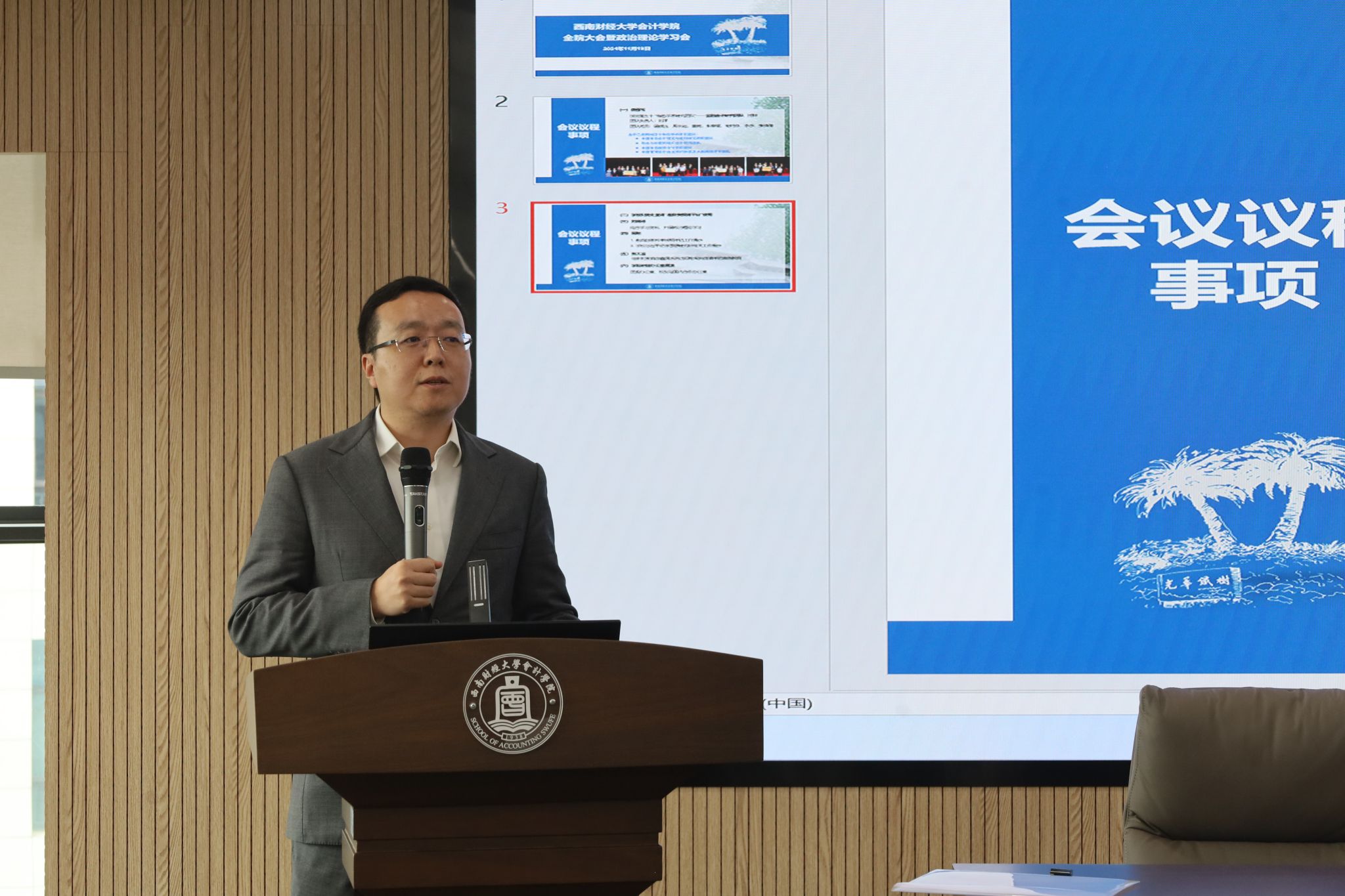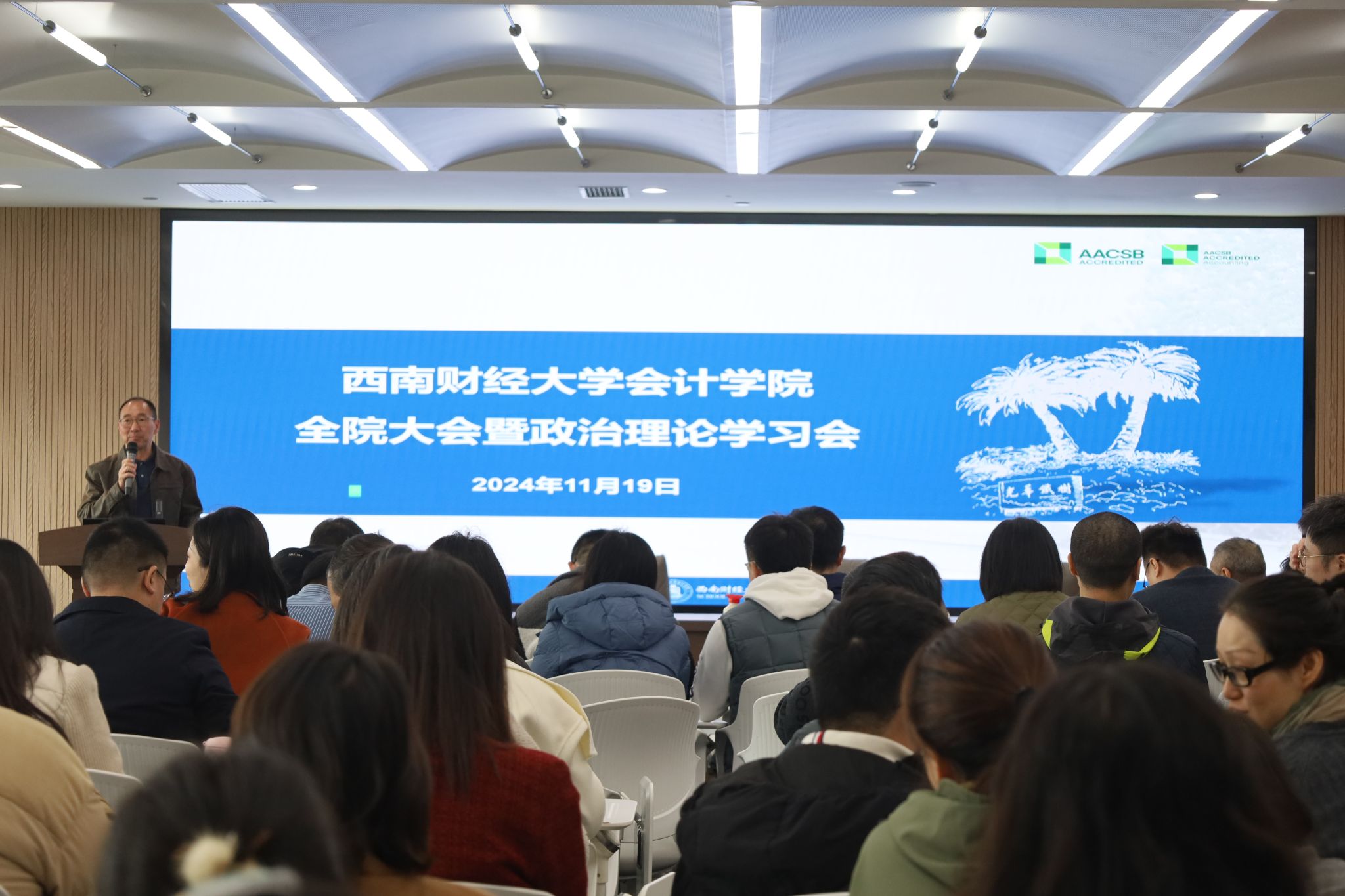 为深入学习贯彻习近平总书记重要讲话和党的二十届三中全会精神,筑牢教职工思想政治基础,11月19日下午,会计学院在诚正楼720会议室召开政治理论学习会。学院党委书记刘晓彬主持会议,全院教职工参会。
