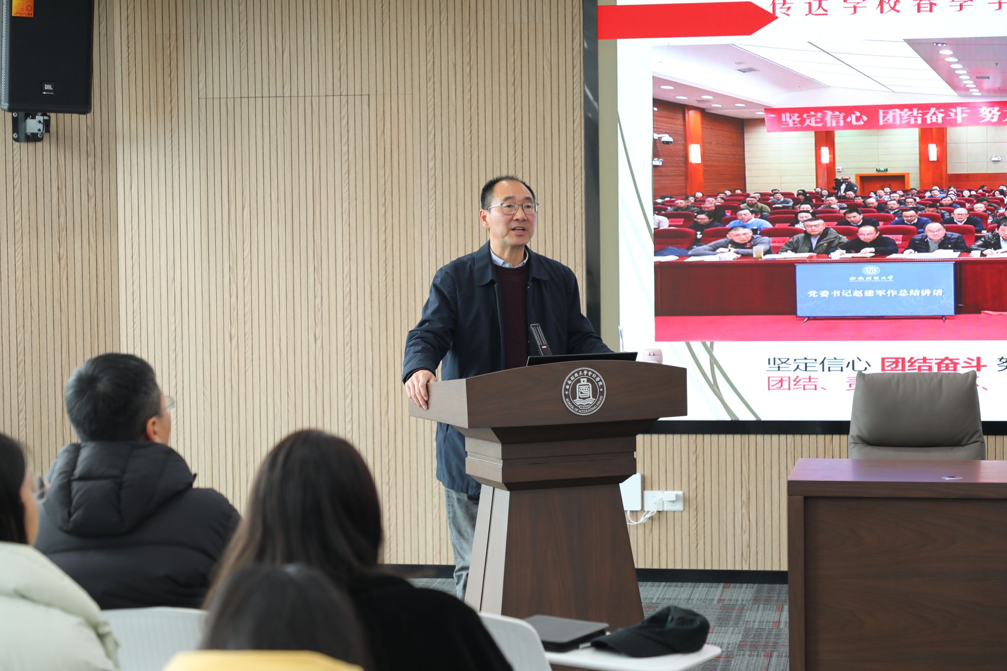 会上,学校党委常委副校长、会计学院院长马永强传达学校工作发展相关精神,对学校2023年工作总结简要通报,就学校2024年工作要点进行重点领学。他强调,全院教职工要把思想和行动统一到学校党委的各项决策部署上来,聚焦学校高质量发展,立足岗位、同心同德,鼓足干事创业的精气神,保持担当有为的责任感,着力抓好学院“十四五”规划、“双一流”建设、百年校庆筹备等重点工作,以实际行动扎实推动学校和学院高质量发展。