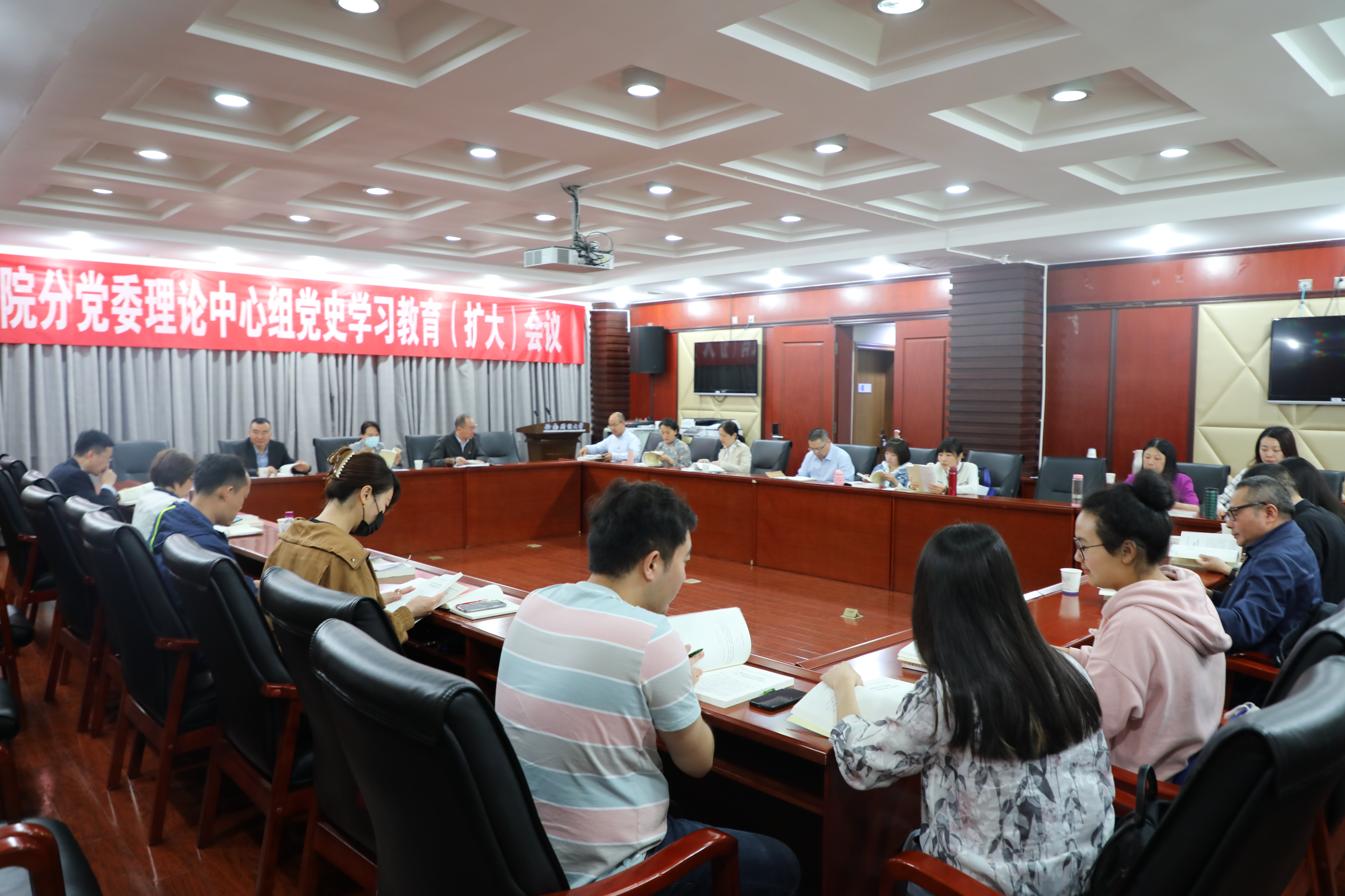 为进一步增强历史自觉,保持战略定力,筑牢信仰之基,5月7日上午10:30,会计学院在通博楼D201会议室,以分党委理论学习中心组扩大会议形式,组织开展“学史增信,增强‘两个维护’自觉”专题集中研讨。学习研讨由学院分党委书记刘晓彬主持,学院分党委理论学习中心组成员、教授委员会主席、系所(中心)负责人、各职能办公室主任、教工党支部书记、学生党支部书记代表参加。学校党史学习教育第一指导组组长黄珣到会指导。