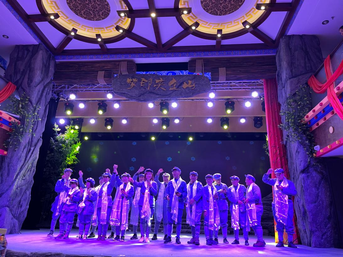 晚上,在碛藏族乡的舞台上,学员们和当地藏族同胞共同举办了“军民鱼水情”晚会。藏族同胞为大家表演了欢快曼妙的民族舞蹈《欢腾青衣江》《金色太阳》《硗碛姑娘》和高昂动听的《青藏高原》,学员们带来了诗朗诵《翻越夹金山》《沁园春·雪》和歌曲《我的中国心》《没有共产党就没有新中国》《红旗飘飘》,最后大家在舞台上牵起了手,一起跳起了欢快的藏族锅庄,共同谱写了军民鱼水情深意长的美好画面。