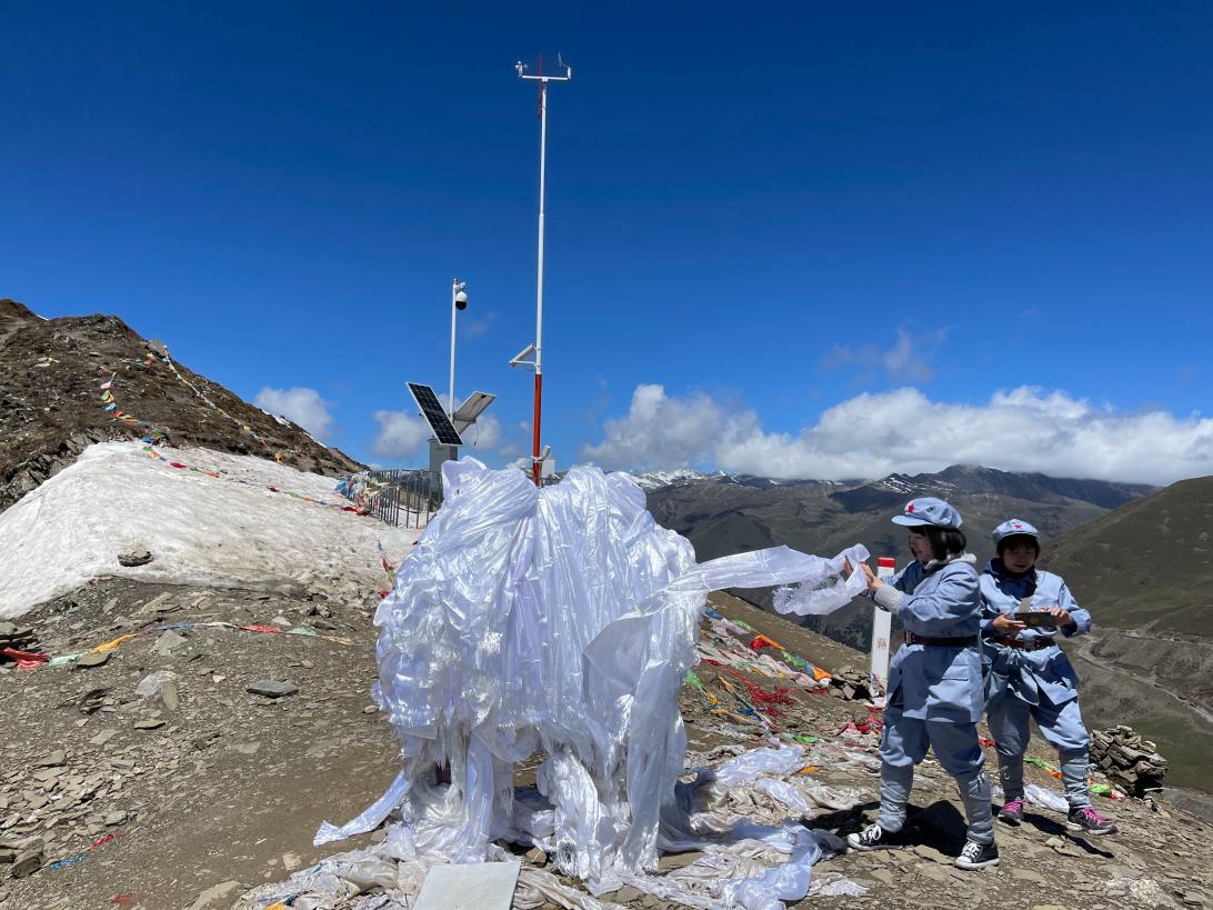 最后,学员们来到海拔4114米的王母寨垭口,对当年牺牲在雪山上的无名烈士肃立默哀,并献上洁白的哈达。