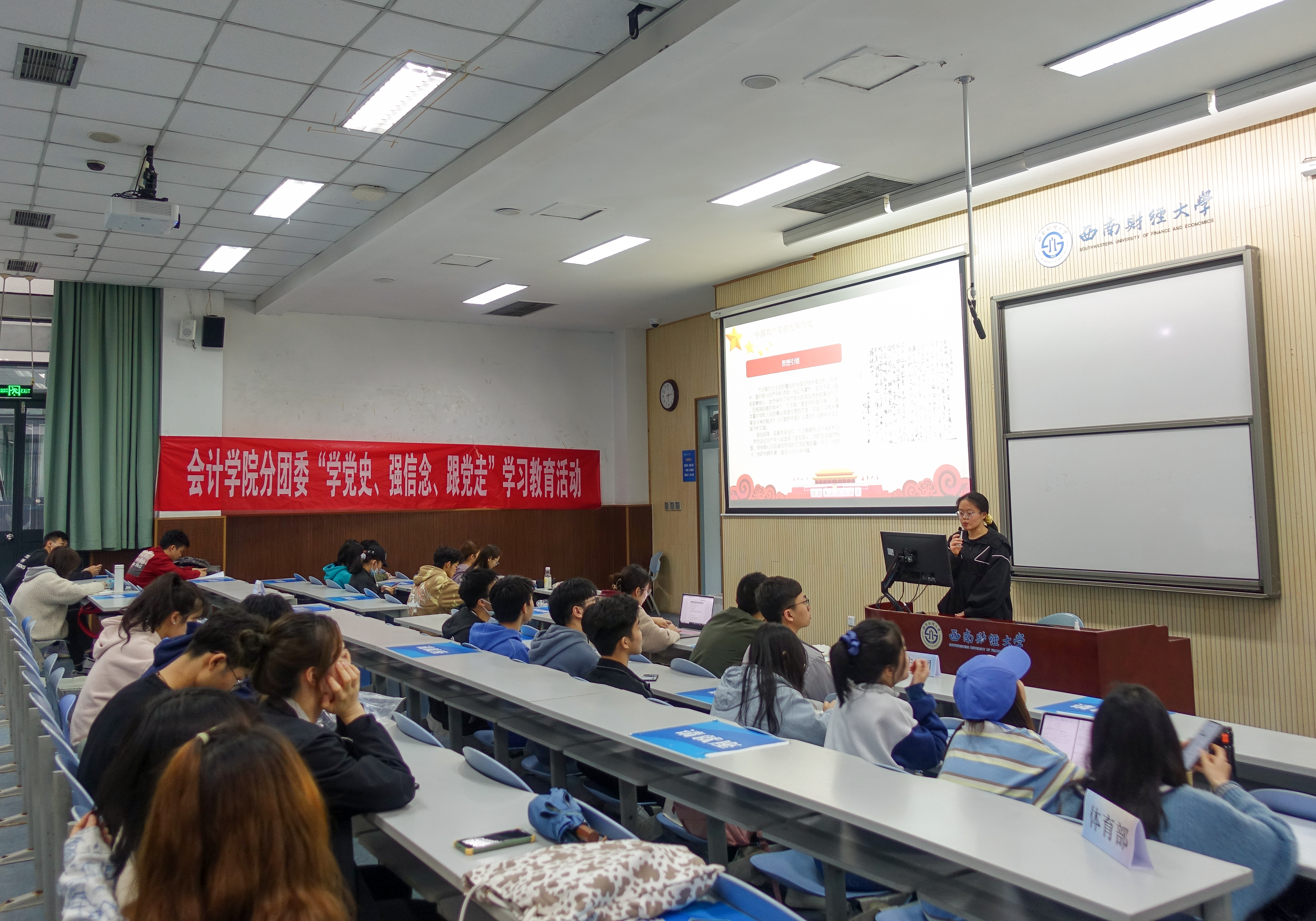为推动党史学习教育,让青年团员在党史中汲取精神力量和经验智慧,会计学院分团委、学生会于4月18日在经世楼G102开展“学党史、强信念、跟党走”第六期学习教育。在本次活动中,团学全体成员走进那段充满血与火的岁月,学习方志敏烈士坚贞不屈的精神。