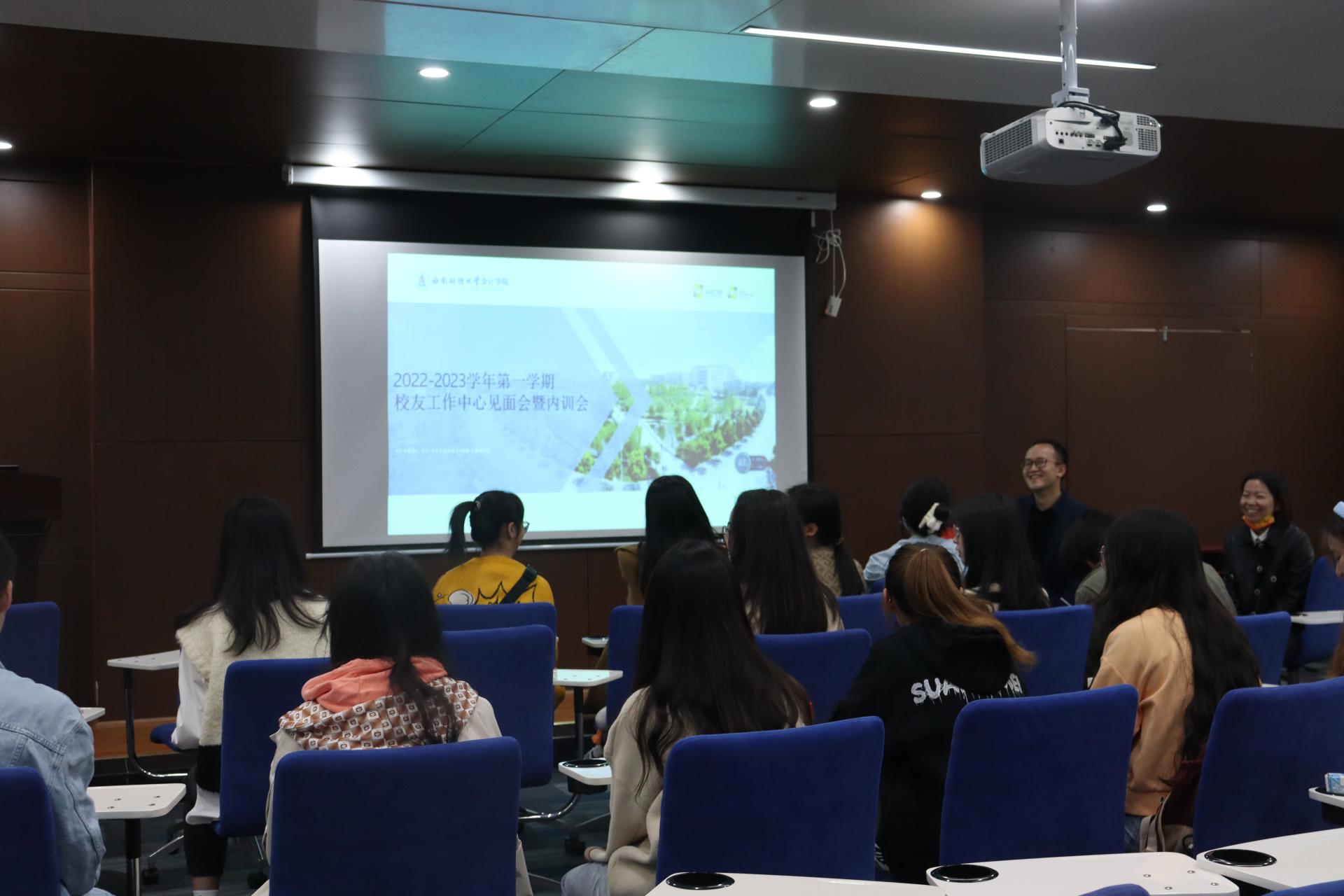 最后,徐天然老师和同学们做了进一步分享,希望同学们从“四个一”去思考工作。做到一个了解,了解会计校友工作的发展历程;进行一个思考,思考校友工作的重心是什么;统一一个认识,认识校友工作中心的定位;明晰一个要求,做优秀的学生干部,借助校友工作平台做好自身规划。