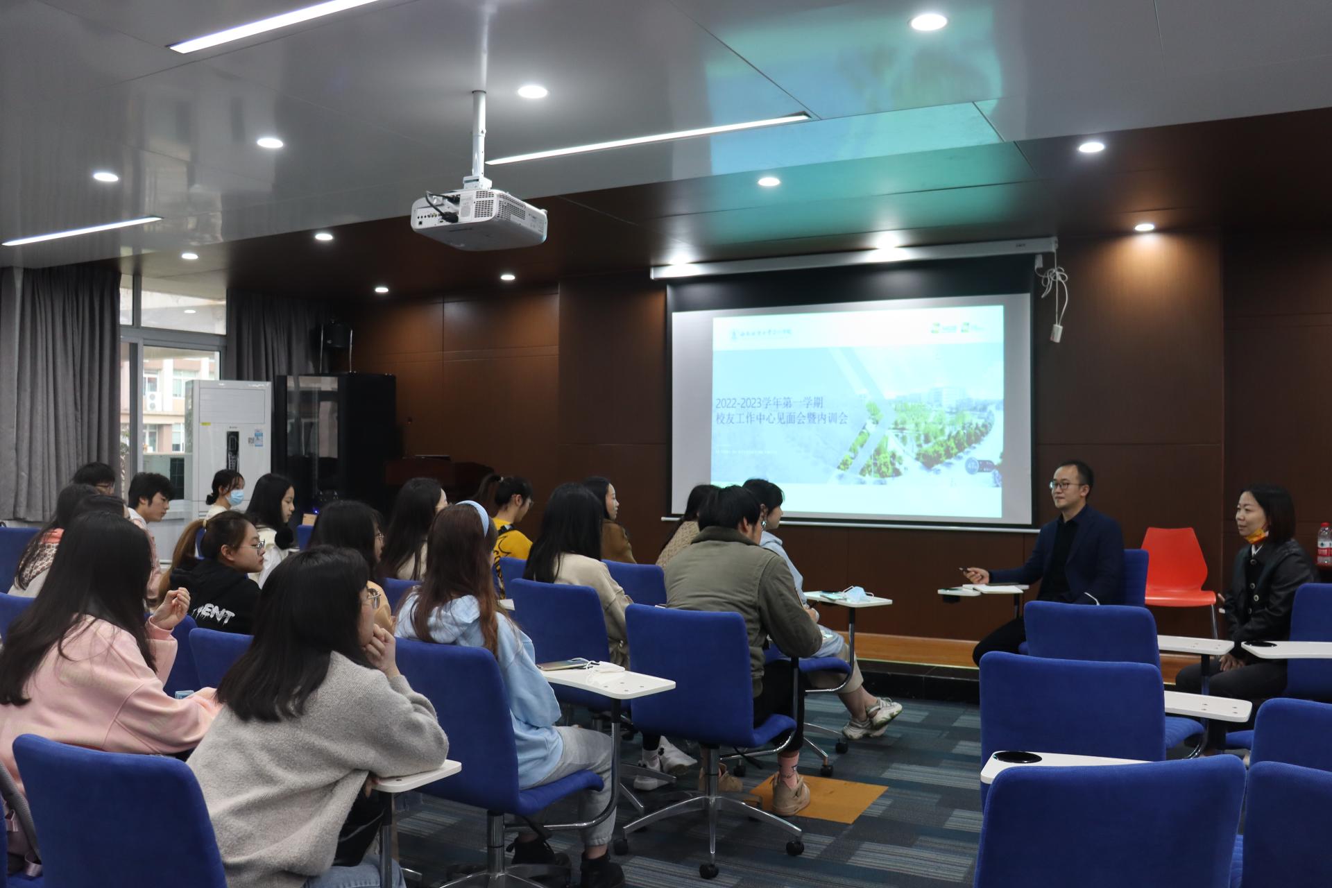 随后,任虹老师与同学们进行了交流,任虹表示,作为指导老师,自己也是以一个校友工作新人的角度加入这个团队,希望以后和同学们一起为学院校友工作贡献力量。也希望同学们从在校生和校友两个维度思索校友工作的开展,构筑夯实校友和在校生之间的桥梁,进步共赢。