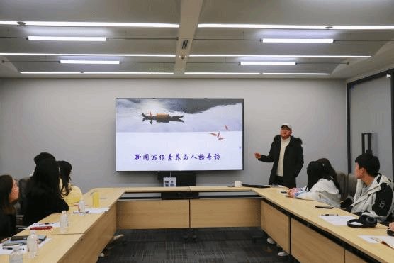见面会后,何振雄老师为大家做了新闻素养和人物专访的培训。何老师强调,要坚持新闻的真实性、时效性、思想性,他结合我院学生新闻写作的实际情况和要求,通过新闻实例从新闻的五要素、新闻结构、新闻图片等三方面展开新闻素养的培训。