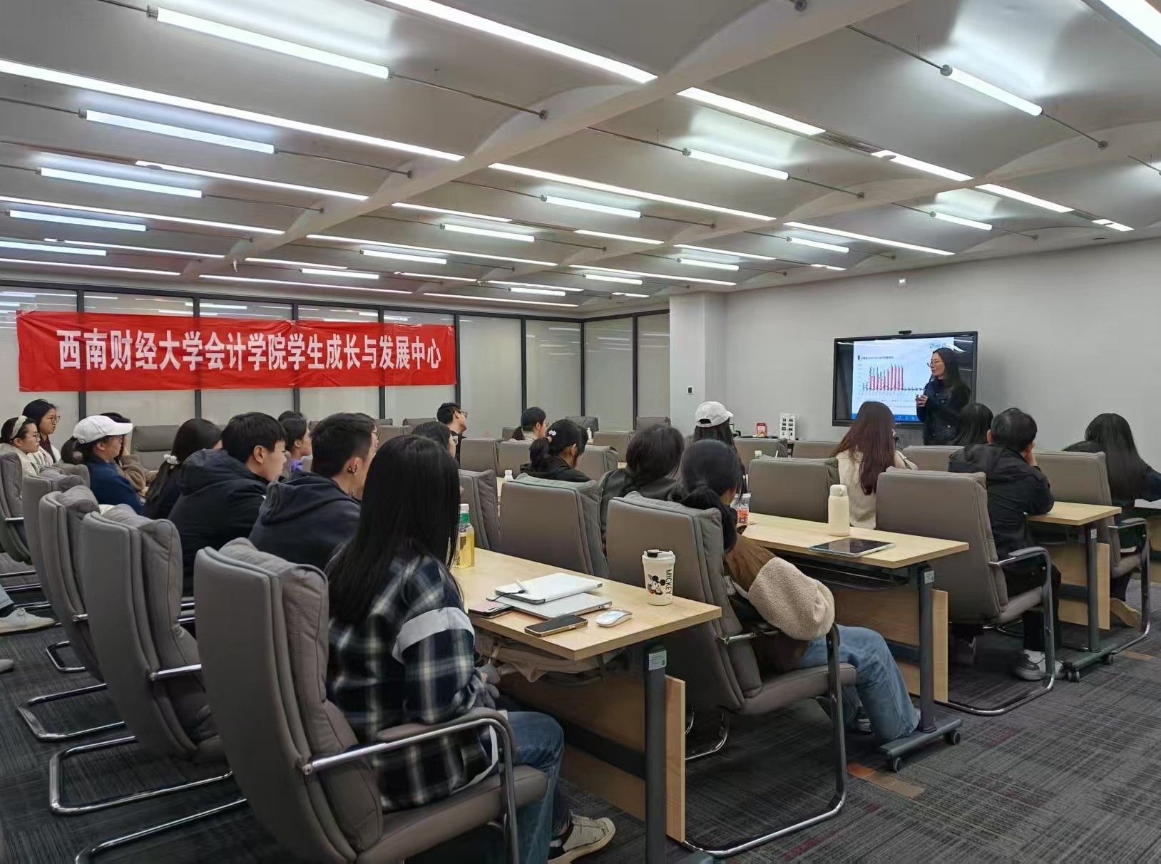 3月25日14时,由会计学院学生成长与发展中心主办的第二十九期“思政大讲坛”在诚正楼650会议室举行。本期活动以“当‘钞能力’遇到马克思——会计案例中的思政经济学”为主题,特邀会计学院教授步丹璐担任主讲。