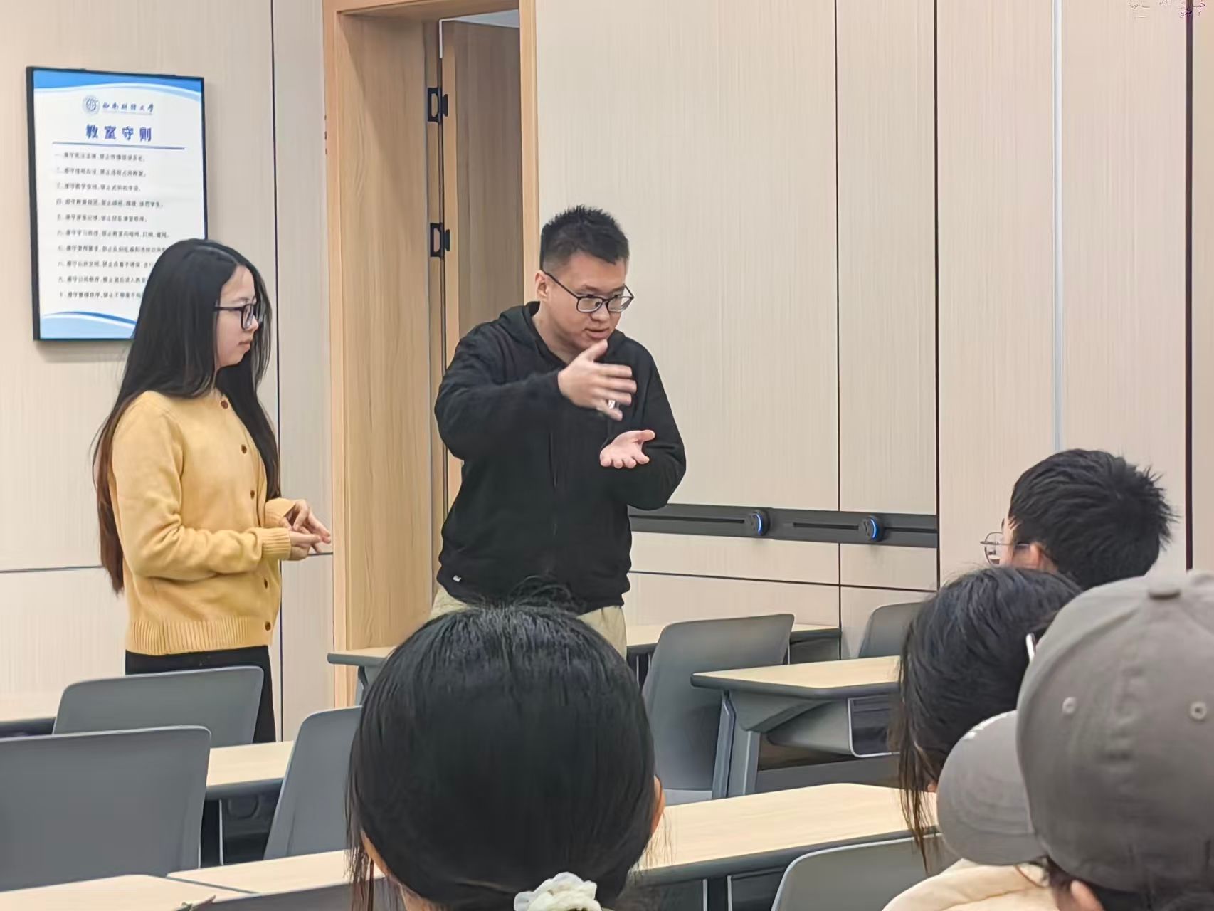 活动伊始,学长学姐们对推免的基本条件与整体流程进行了系统梳理,详细解读了成绩排名、英语要求、科研竞赛、实习实践等关键要素在推免中的具体作用,强调了综合素质积累的重要性。其次,他们结合各自成功保送至多所高校的经历,从文书材料准备、书面笔试技巧到面试各环节注意事项作了细致分享,并提出了针对不同院校的复习策略与时间管理建议,鼓励同学们尽早确立目标、合理规划学业。最后,在互动交流环节,同学们围绕竞赛队友寻找、科研导师选择等实际问题踊跃提问,学长学姐结合自身经验给予了详尽解答。