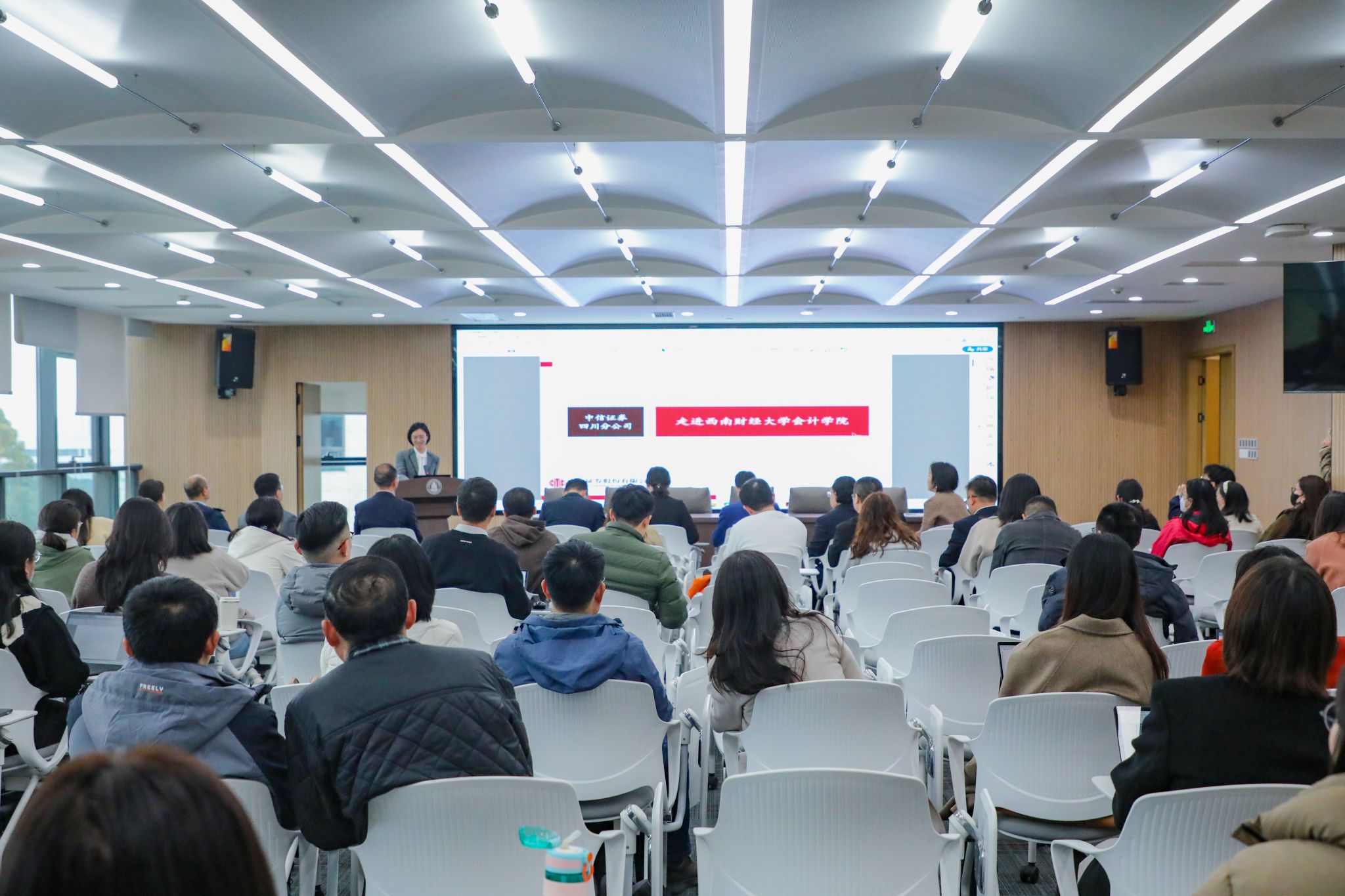 徐峥对学院的热情接待表述感谢,简要介绍了中信证券的发展历史及概况。并表达了想通过与院校的互动交流推动人才培养、实现金融企业的担当、进而为四川金融领域出一份力的愿景。他对我院人才培养成果表示肯定,分享了学院优秀校友在中信证券有所建树的案例。他表示中信证券愿意持续吸纳学院优秀人才,深化合作、共同努力,帮助学生提高社会适应能力。