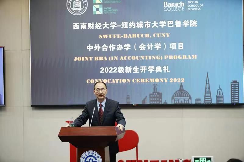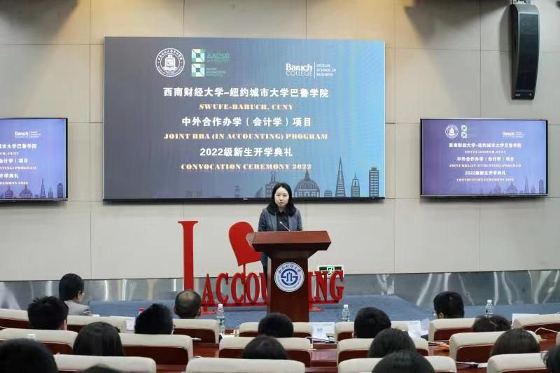 典礼伊始,纽约城市大学巴鲁学院校长David Wu教授、杰克林商学院院长Fenwick Huss教授通过视频向新生致辞并表达热烈的欢迎。他们简述了巴鲁学院会计学专业是位于全美前列的优势专业,通过回首过往西财学子的优异表现,对新生们提出了更上一层楼的期许。两位教授还介绍了巴鲁学院友好包容的校园文化,由衷地希望能在三年后与在纽约与新同学们相见。此外,项目2022届毕业生还从正在深造的宾夕法尼亚大学、伦敦政治经济学院、南洋理工大学、北京大学等知名高校发来视频祝福与鼓励。