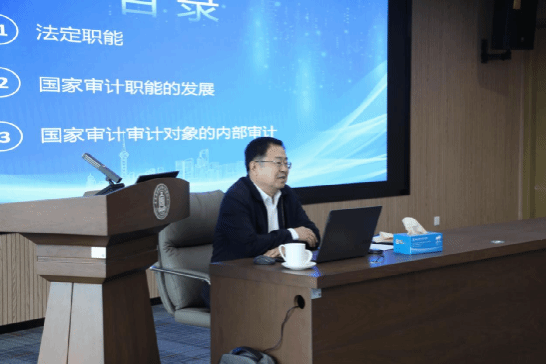 下午14时,郝书辰主任委员在诚正楼720会议室作《国家审计的职能与发展》专题讲座。他从宪法与审计法切入,系统解读国家审计的法定职能及2021年审计法修订要点,以习近平总书记关于审计工作的重要论述为指导,深入阐述审计监督体系建设与监督贯通协同的发展方向,并就内部审计的作用发表见解。讲座结束后,郝书辰主任委员与现场师生互动交流,针对“审计专业学生如何提升实践能力”“税收监管制度建设”等问题进行细致解答,鼓励师生“扎根中国审计实践,既要精通理论,更要擅长实操”。
