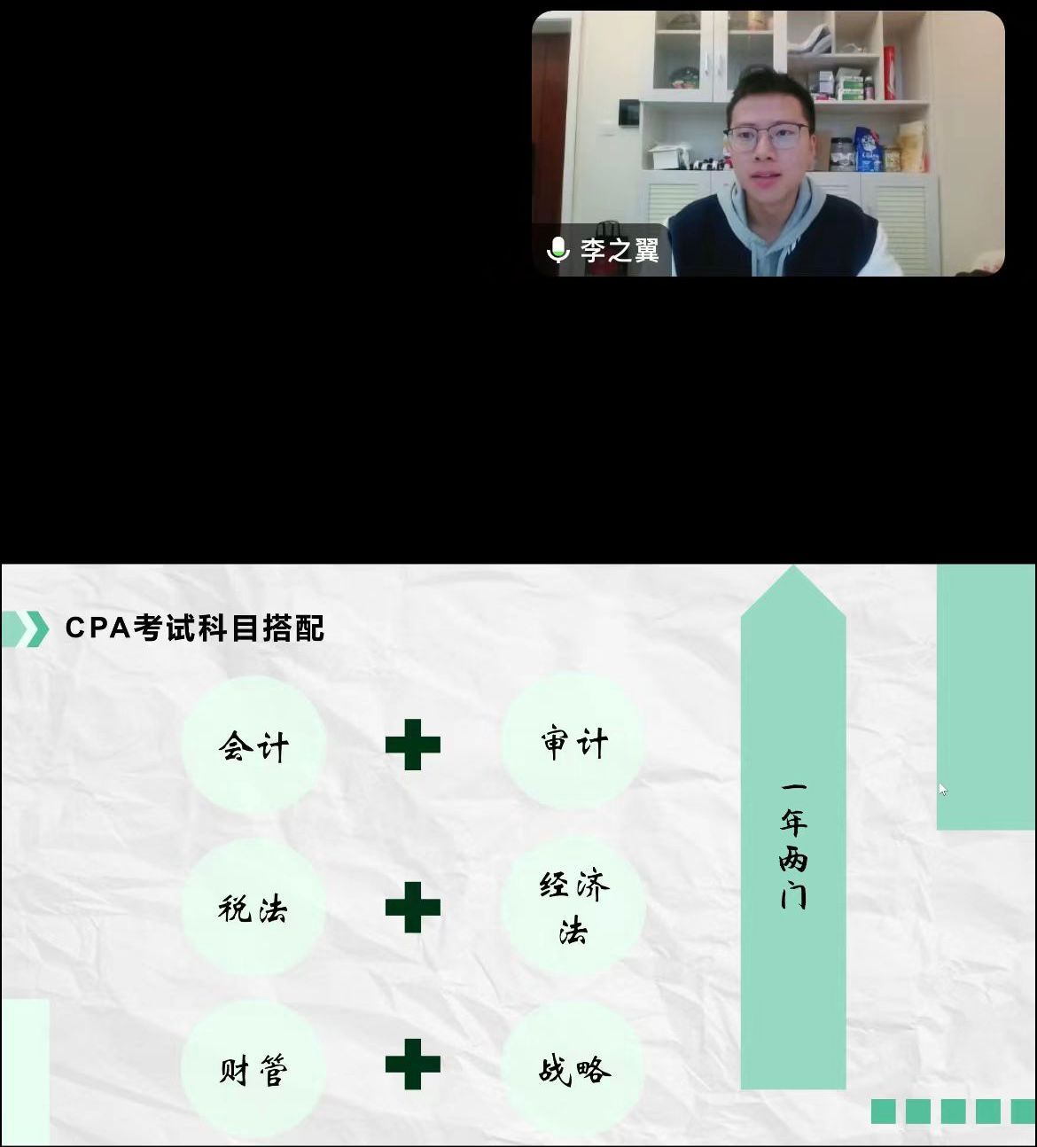 2024年11月12日,会计学院学生成长与发展中心在腾讯会议平台成功举办了“CPA备考心得”分享会。本次活动邀请yl1111永利集团2023届会计专硕毕业生、CPA会员李之翼作为主讲嘉宾,为同学们进行全面而深入的备考经验指导。